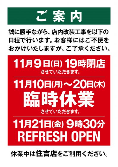 河田店 臨時休業